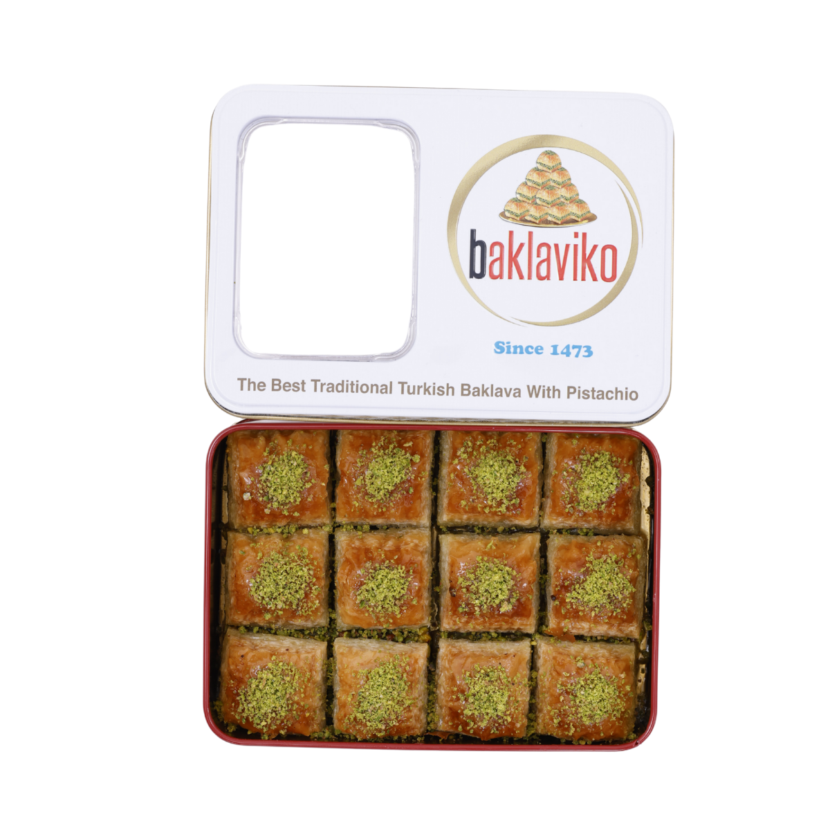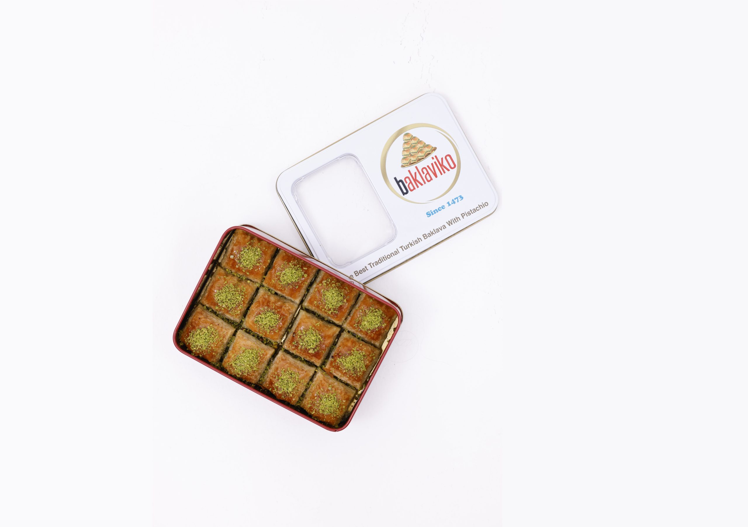 Baklaviko 700 Gram Antep Fıstıklı Özel Kutu Baklava Baklaviko Fıstıklı Kare Baklava susuz yetişen sert buğday unundan elde edilen ensek hamur.